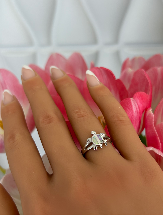 Sortija de tortuga y corazón opal blanco