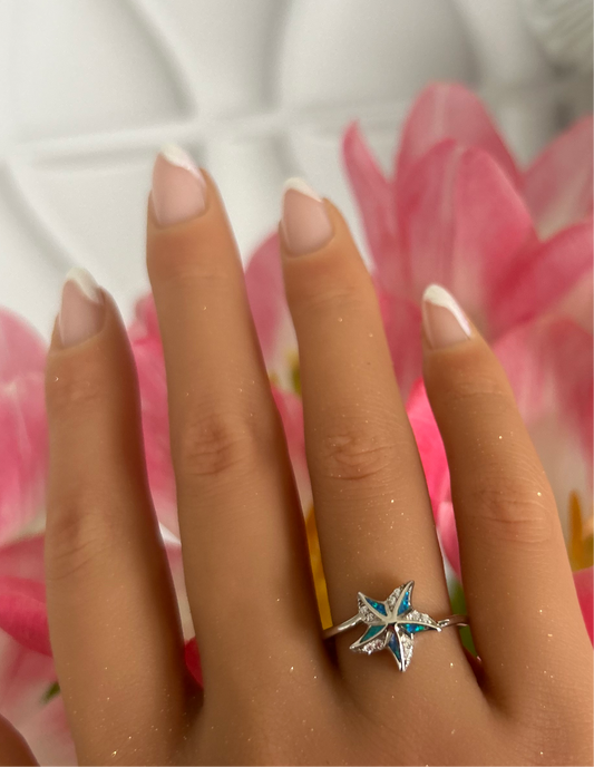 Sortija estrella de mar con piedra opal azul