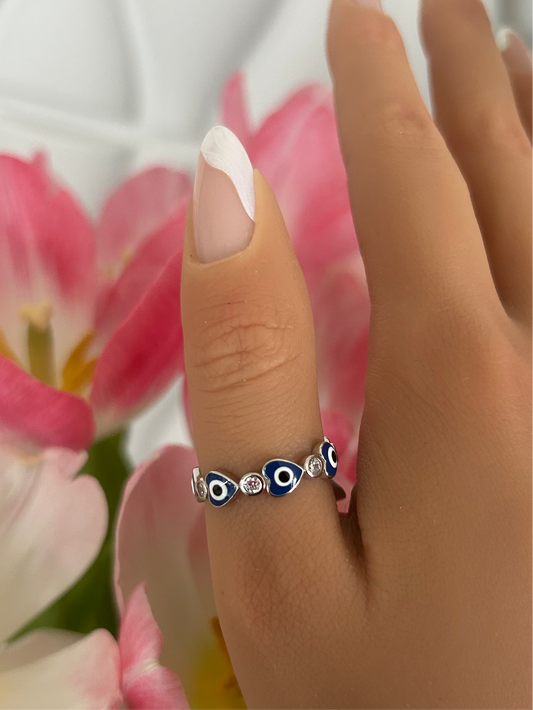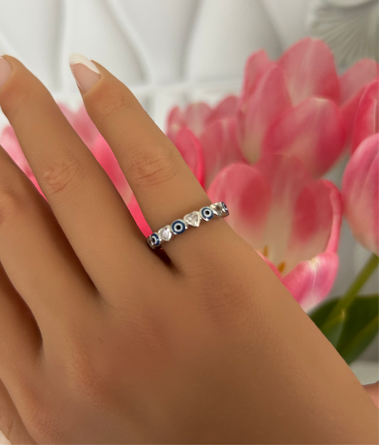 Sortija e evil eye y corazones