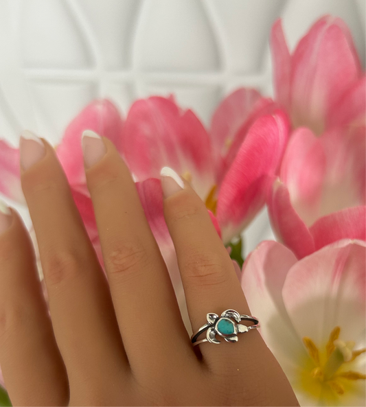Sortija de tortuga con piedra turquesa