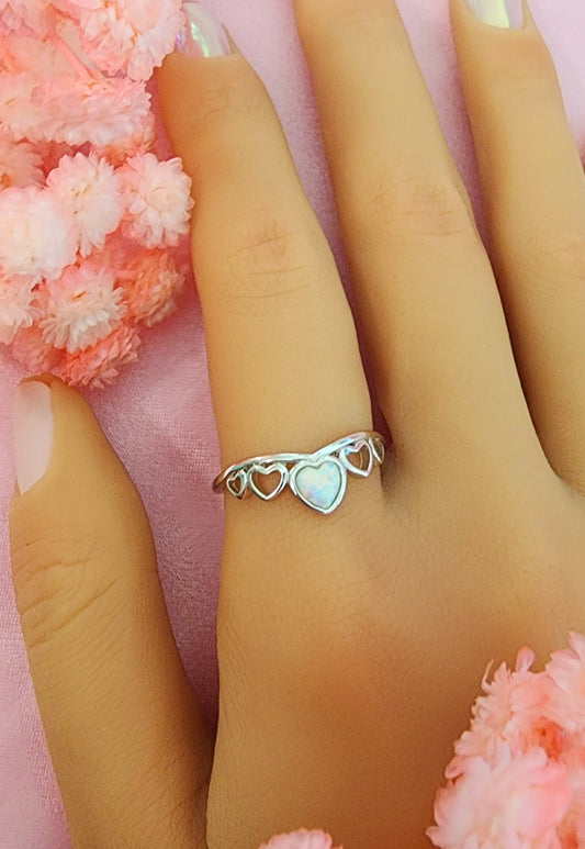 Sortija de corazones con piedra opal